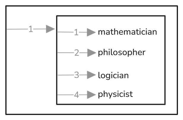 Let’s start with the primitive case, a CSV consisting of a single row with the following values: mathematician, philosopher, logician, physicist.
