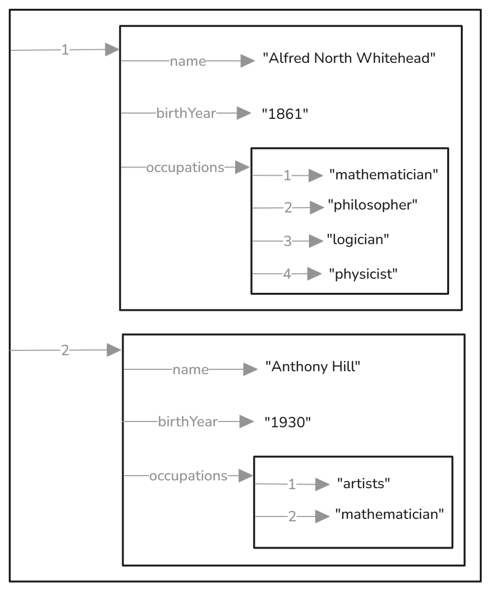 “occupations”: [”artist”, “mathematician”],